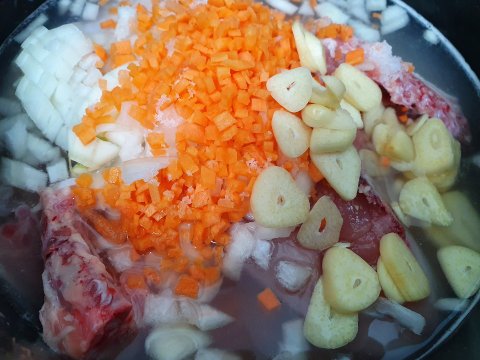 냄비에 고기 담고(500g기준) 고기가 잠길정도로 물 붓고