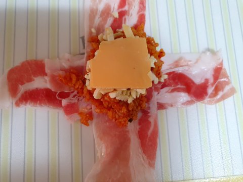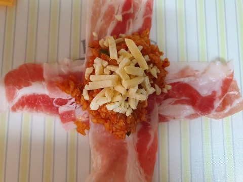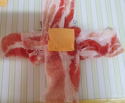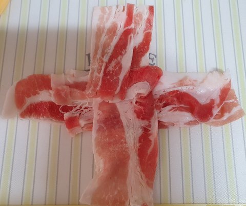 대패삼겹살을 십자+ 모양으로 만들고