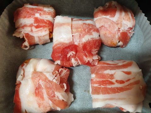 7분정도 예열한 에어프라이어에 담고
