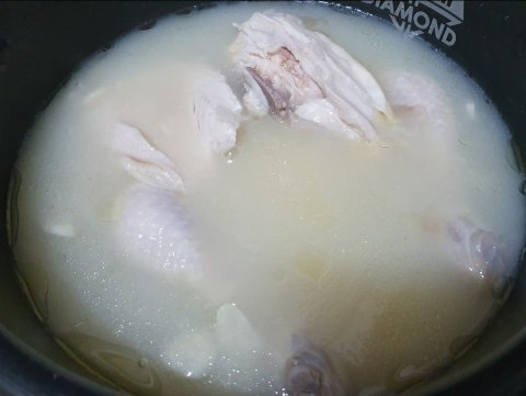 닭이 잠길만큼만 물을 붓기