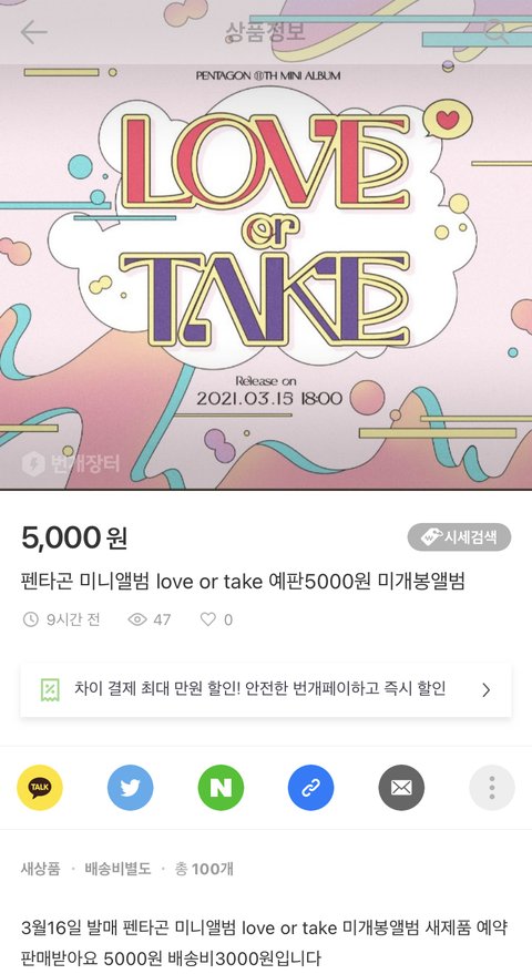 사진은 다른유니한테 허락받고 퍼온 글인데 지금 ㅂㄱ장터에서 우리 앨범을 예판을 받는다 ㅎㅎㅎ 아직 정식 예판이 나오지도 않았는데 팬싸때매 이러나바. 심지어 오천원이래. 우리 초동이 얼마나 중요한데 이런짓을해????? 지금 나 넘 화남