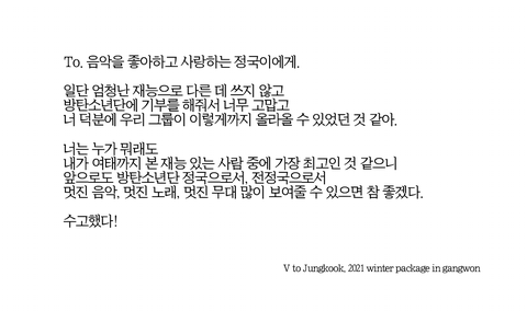 윈패 뷔가 정국한테 쓴 편지 절라 감동