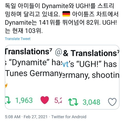 독일 아미들이 폭둥이랑 욱 스밍해서 어른튠즈에