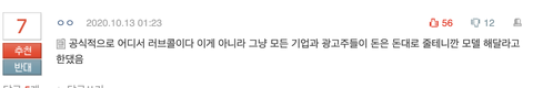 근데 이건 자의식 과잉, 정신승리가 너무 심한 거 아닌지... 최소 몇 십 년부터 몇 백 년의 전통은 갖고 있는 브랜드들인데 몸값이 비싸다드니 이런 얘기는 쪼옴... 심지어는 《동양인》이라서 그렇다는 것도 있었는데 지디, 제니, 카이, 찬열 등등 명품 브랜드 뮤즈, 엠버서더 같은 거 한 우리나라 아이돌들 꽤 되지 않나...? 좀 웃기고 안쓰럽기까지 하더라...