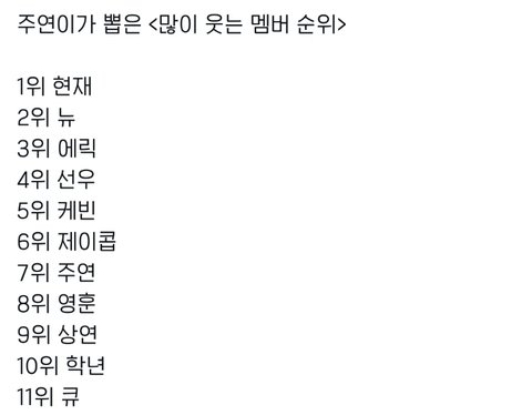 주연이가 뽑은 많이 웃는 멤버 순위