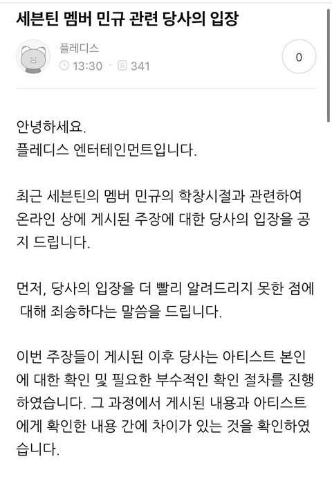 김민규 공식 입장문 나옴