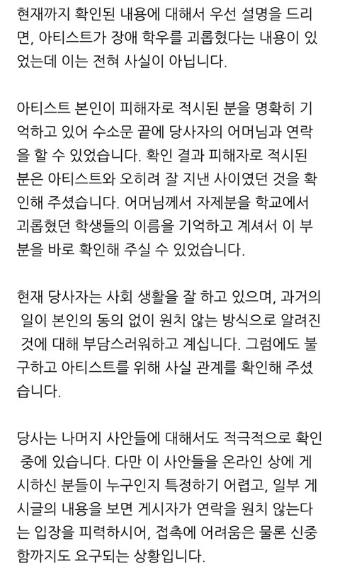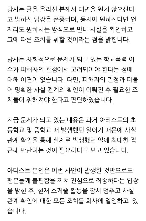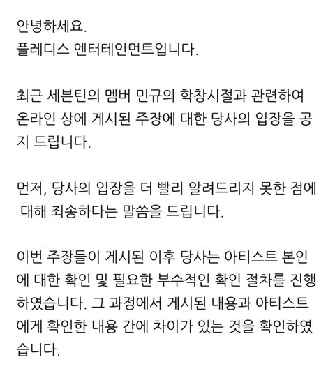 민규 학폭 소속사 입장 떴음