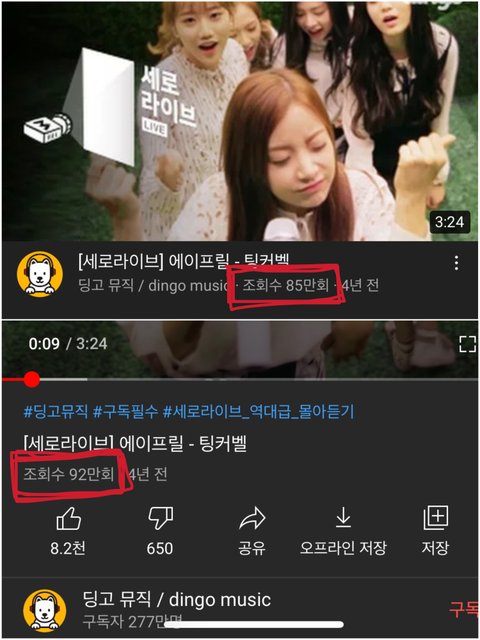 와 에이프릴 세로라이브 조회수 미친듯이 올라간다...