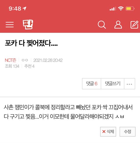 기분이 죤나 쎄한거 그래서 뭐하나 방문 열어봤는데 코팅지 너덜너덜한 스페셜 이어북(ㅅㅂ 진짜로 며칠을 다 뒤져보면서 겨우 싸게 받았는데)을 들고 있는거임 난 진짜 잘 못 본줄 알았어 암튼 개빡쳐서 너 지금 뭐하냐고 소리질렀는데 그 __이 지 엄마한테 감 난 포카 그대로 가져가서 뭐 하는짓이냐고 이게 얼마짜린줄 아냐고 했는데