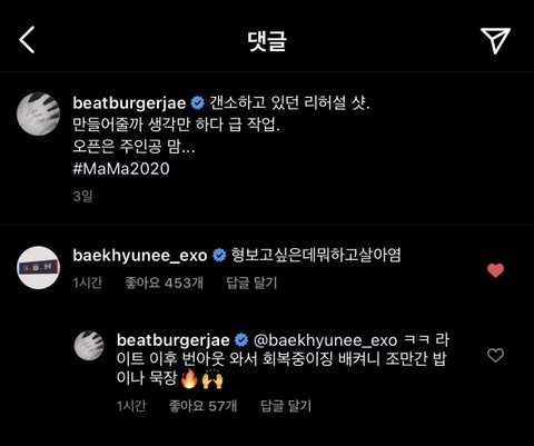 백현이 인별 댓글 삐삐