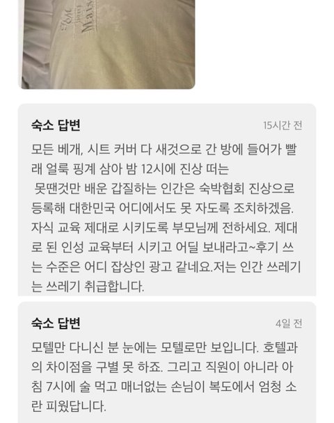 내려갔더니 자기들은 종업원이 아니라 자기 딸이 사장이라며 전화를 바꿔주시더니 "강아지들아 _도 안돼는 8만원 돈 내면서 예민하게 왜그러냐 그냥 우리집에서 꺼져라 강아지들아" 라고 욕하셨습니다