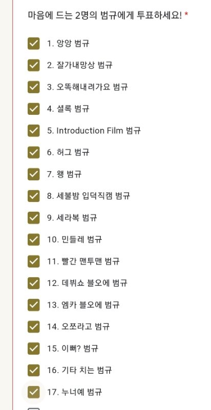 마음에 드는 거 다 투표해놓고 하나씩 걷어내자 했는데 이래서는 끝도 안 나겠다 ㅅㅂ 어카냐