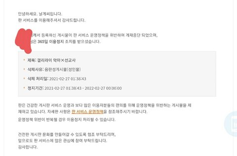 새로 파고 글 딱 하나 올렸는데 바로 삭제됐어....운영자 개너무해