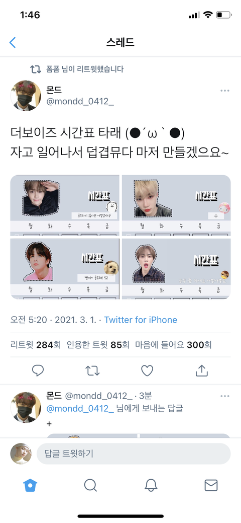 방금 트위터 보다가 발견했어! 링크 복붙해서 들어가보숑 https://twitter.com/mondd_0412_/status/1366121138149986308?s=21