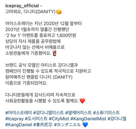 [강다니엘 아이스프레이] 다니티 이름으로 소방관분들께 기증