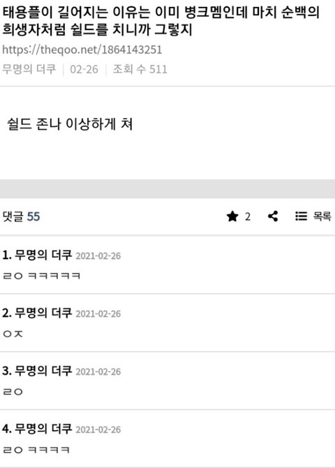 하지만 이글 베플 또 쉴드로 바꾸러 올거임 왜냐? 지금 태용 쉴드할 수 있는 유일한 사이트가 판이거든