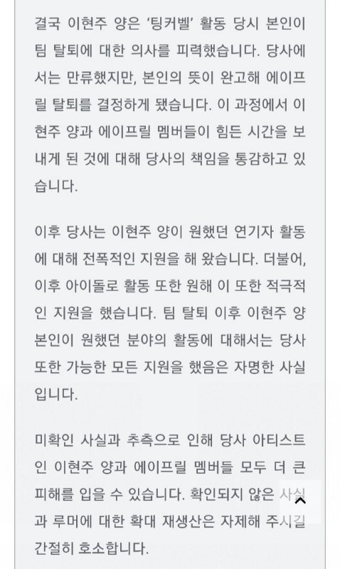 근데 이거면 진짜 어떻게 되는 거임? 전 에이프릴 현주 동생이라는 글은 지금 추천수 만도 넘어갔고, 진짜 현주와 에이프릴의 대립이여서 그랬던 거면 이미지 어떻게 되는 거임?