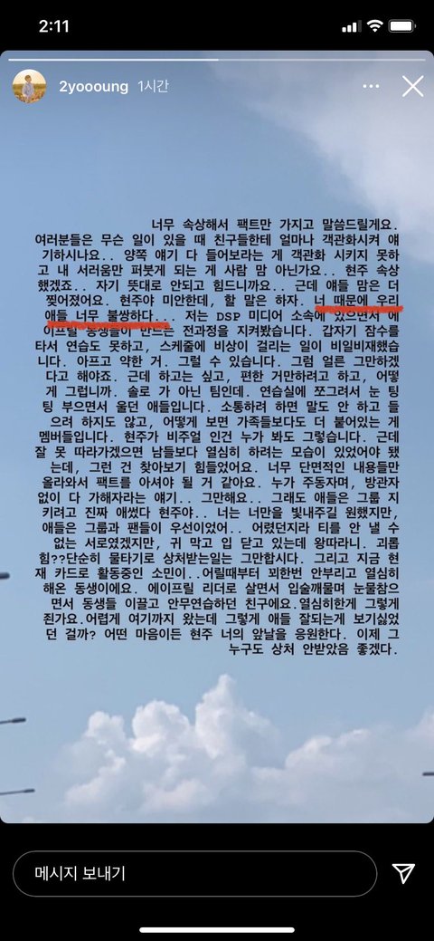 전 dsp 소속 에이잭스 멤버가 올린 에이프릴 쉴드글