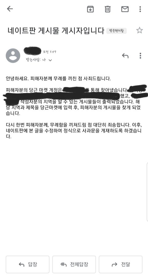 고소각오분이 메일 주셨고 사과문 정확하게 작성하시고, 저 처럼 의혹에 답변 주셔야합니다.