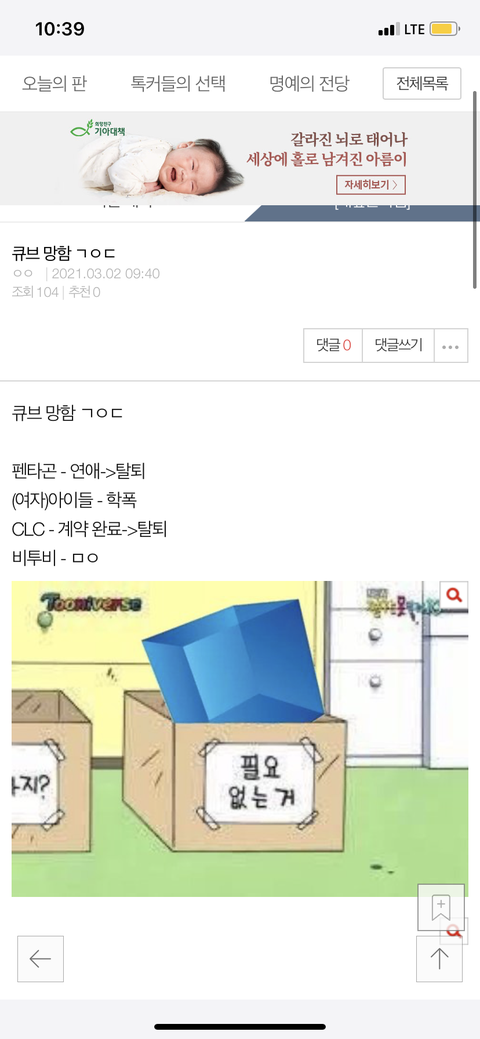 이거야 별거없어 ㅋㅋㅋ들어가지말고 먹금댓도 안달앗으니 걍 먹이 주지말자~ 우린 오늘 컨포뜨니까><