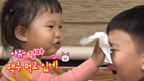 아무튼 우는 오빠 코도 풀어주면서