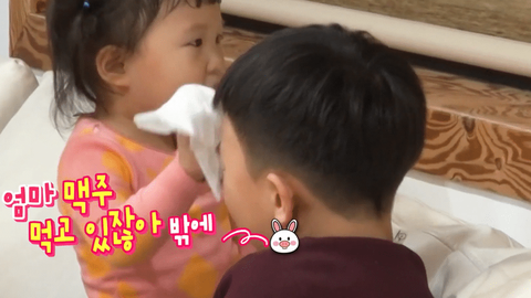 "엄마 맥주 먹고 있잖아 밖에~"