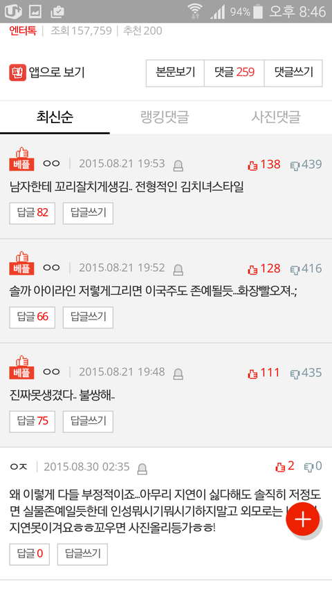 솔직히 얼굴 못생긴건 판녀들 이길자가 없는게 팩트
