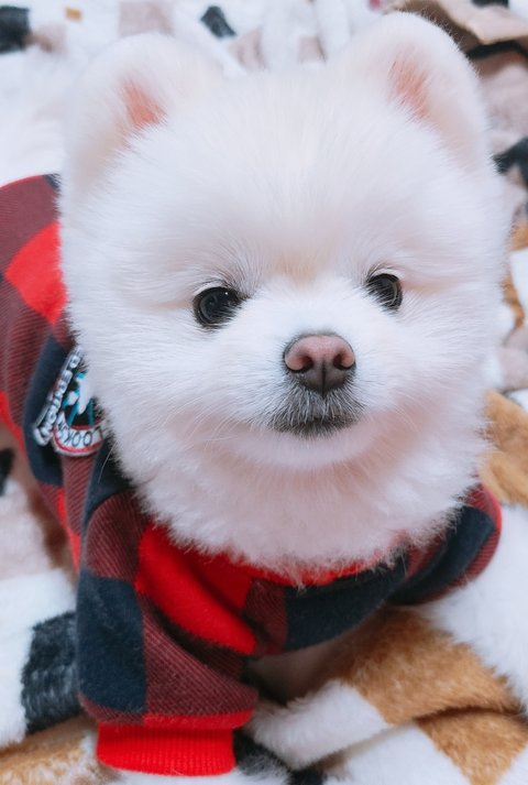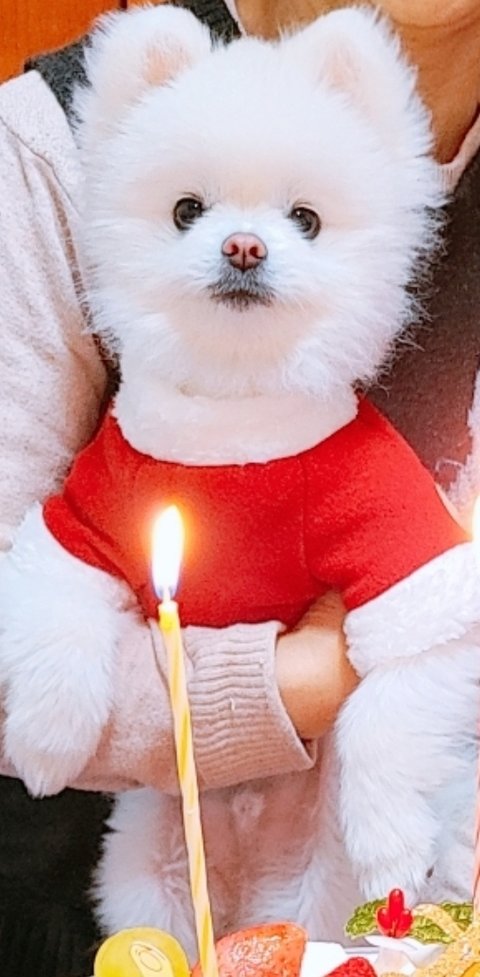 흰색포메라니안이고 등쪽은 약간 크림색이며 1살 수컷이고