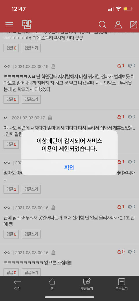 댓글 혼자쓰는거 아님 내가 단 댓글 단 하나도 없어