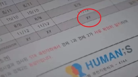 그 때 오윤희의 염색체 XY라고 적혀있어서