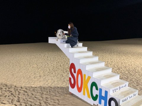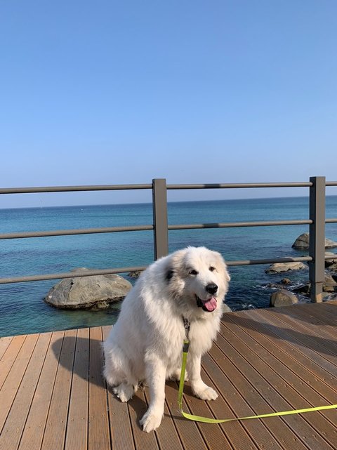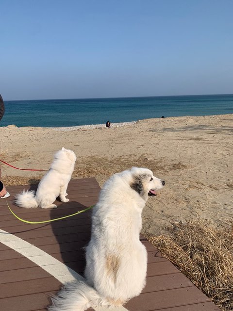 심바 데리고 속초 갔는데 바닷물이 너무 맑아요 ㅋㅋ