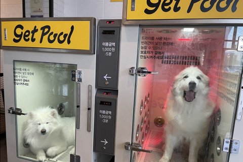 속초에서 놀고 올라와서 셀프목욕! 옆에 리스는 들어가서 평온하게 잠을 자는데 심바는 너무 싫어해요ㅜㅜ