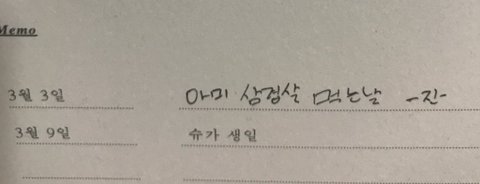 이번 다이어리엔 손글씨는 새해 덕담하고 생일날에 이름 적힌거 밖에 없지?