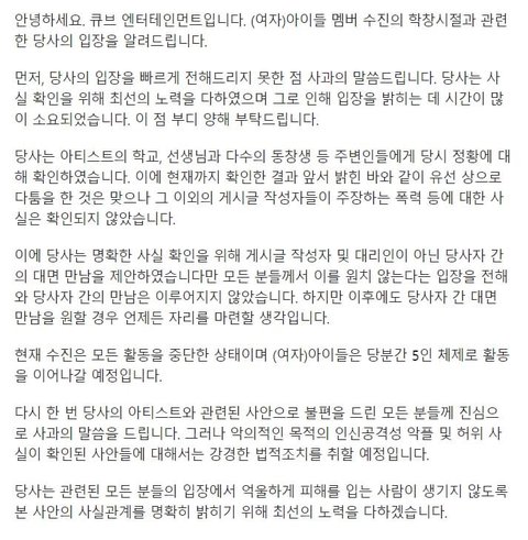 수진 활동중단, 당분간 5인 체제
