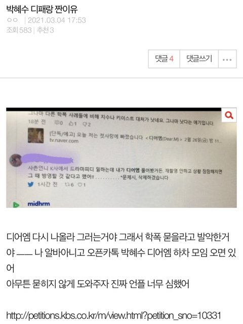 학폭 디어엠 박혜수 ㅂㅎㅅ