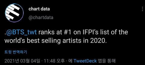 2020년 , 가장 큰 산업적 영향력을 보여준 글로벌 아티스트들 순위 Top10 중 1위