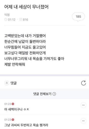 너무너무 그리워 내 목숨을 가져가고 기억을 지워주면 ㅈㄴ 고마울텐데