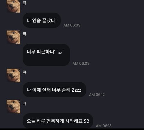 아까 온 창민이 프메인데 어제 연습 5시에 끝나고 수중촬영 갔다가 또 연습하고 6시에 끝난것같음....