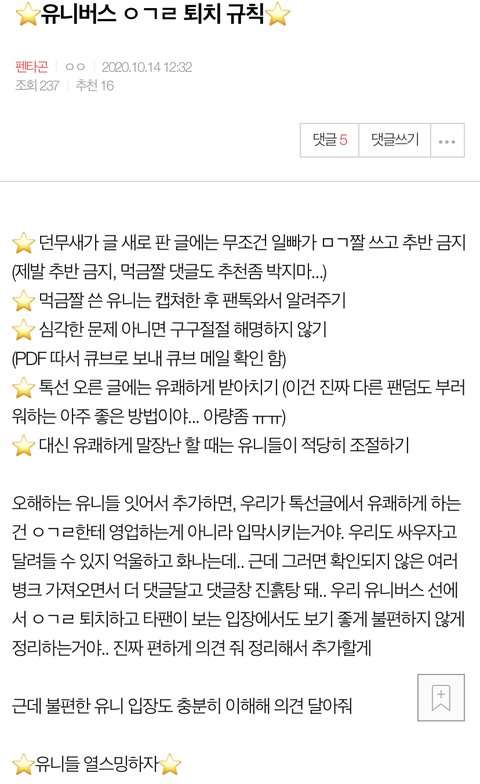 ㅇㄱㄹ대처 공지 있어!!!!!! 엔터에 이제 자주 오를텐데 다시 한 번 읽고 오자!!><