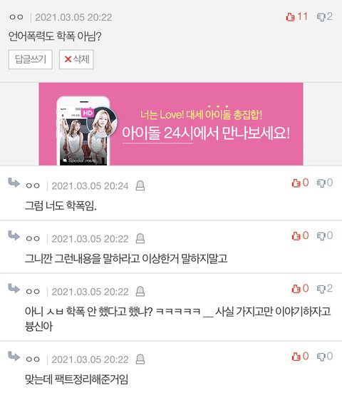 +학폭 아니라는 양심없는 소리 좀 그만해 병크돌 빨다가 정신놨나