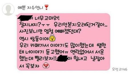 와이지에서 같이 연생하다 다른 기획사로 간 연습생에게 보낸 문자
