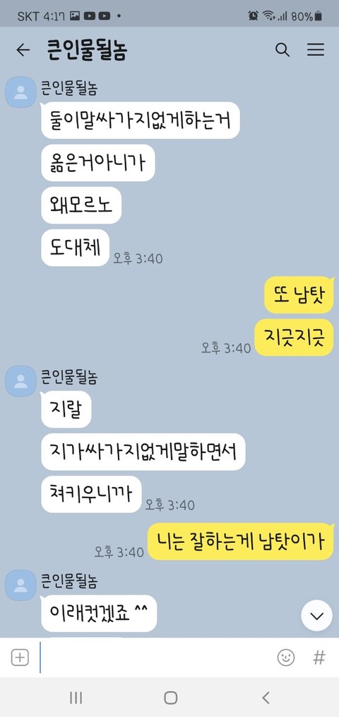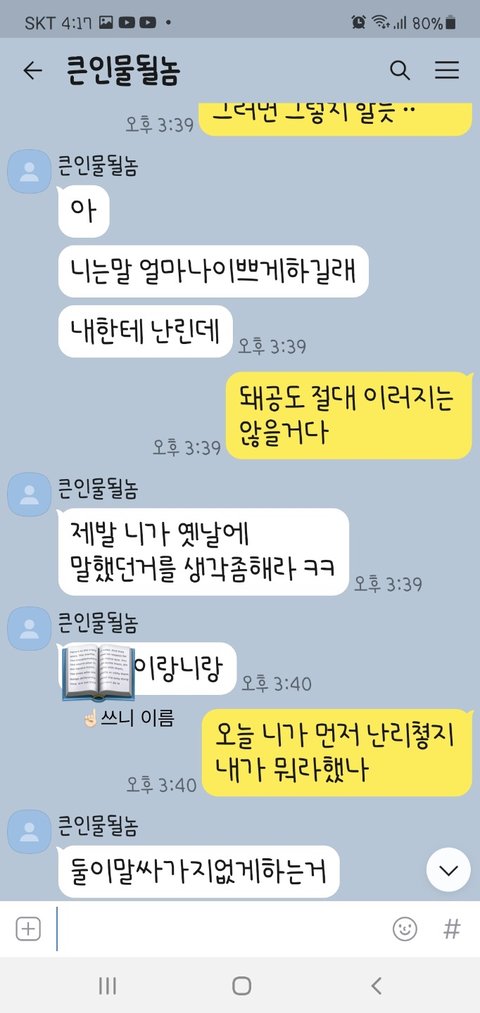 네..그냥... 어디 토로할곳이 없어서 판에 이렇게 올려봐요.. 같이 욕이라두 해주심 그래두 오늘 이 꿀꿀한 기분이 좀 나아질 것 같아요...ㅎㅎㅎ ㅠㅠ