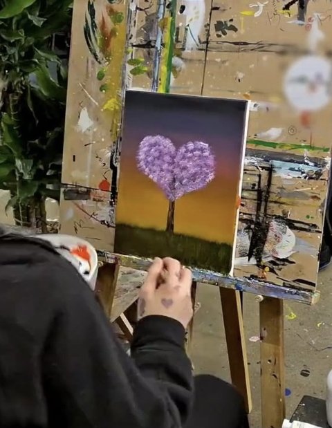 보라색 하트 나무 그려주는 다정한 전정국 ㅠㅠ