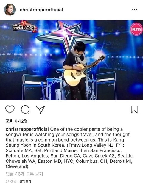 this time의 작사작곡을 모두 맡은 Chris Trapper라는 분이 2018년 인스타에 슈스케 시절 영상을 올려주심