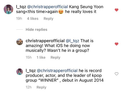 강승윤이 월요일에 출연하는 비긴어게인!!!! 인스타에 미리보기가 올라왔는데 외국 팬이 작곡가분을 태그함 근데 그분이 진짜 보셨음ㅋㅋㅋㅋ 그룹 활동하는 것까지 알고 계시고 또 부른 다니까 좋아하시는 것도 모자라서