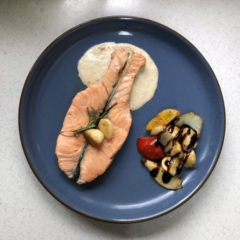 이거는 연어구이! 와사비 간장에 찍어먹어도 맛남 파란 그릇이랑 잘 어울이는듯 ㅎㅅㅎ