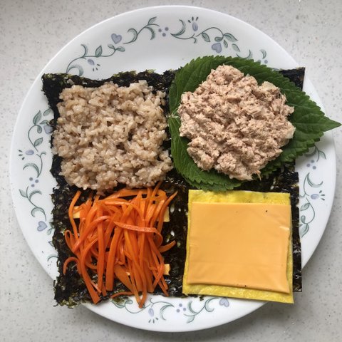인스타에서 유행하던 접는김밥! 참치, 스팸, 샐러드 3종류 만들었는뎅 밥이 많이 안들어가서 생각보다 많이 먹게됨ㅎㅎ 접는 재미가 있움