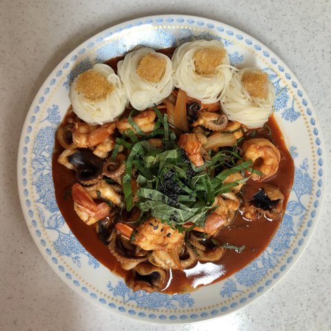 쭈꾸미해물볶음에 소면 비벼서 날치알과 함께 먹으면.. 크.. 마른김에 밥이랑 싸먹어도 맛있음