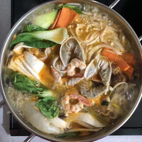 이건 식탁에 인덕션 올려놓고 먹었던 만두전골.. 추운날 먹었는데 속이 아주 뜨끄은해졌음 밖에서 먹는것보다 마시씀