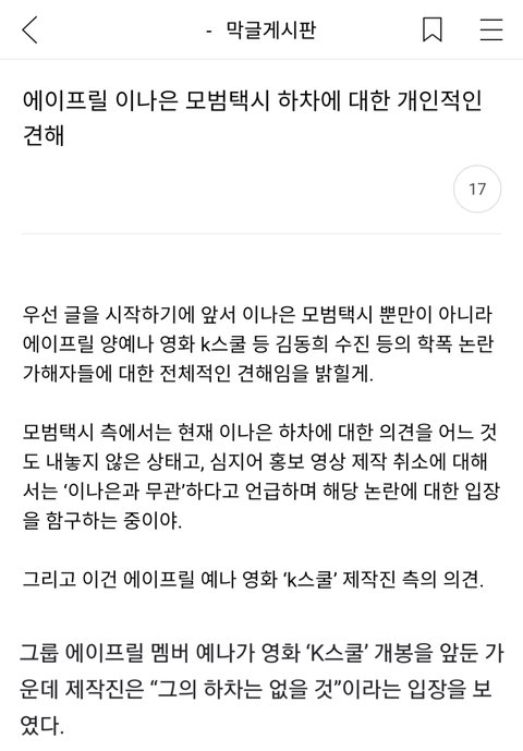 수고 많으십니다. 모범택시 출연예정인 배우 이나은의 하차를 요구하고 싶습니다. 만악 하차가 이루어지지 않을시 모범택시와 관련된 모든 협찬사와 PPL브랜드들까지 불매할 의사가 있으니 이나은 하차에 대해 적극적인 검토 부탁드려요.